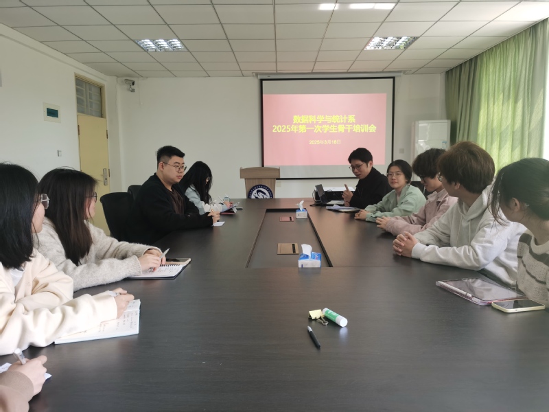 2025年3月18日,数据科学与统计系团委在地矿楼506会议室召开2025年第一次学生骨干培训会。本次会议以夯实基础、赋能成长、共绘蓝图为主题,围绕学生骨干能力提升与月度工作部署展开。系团委书记郑恒鑫及学生主要骨干参会,共同探讨学生工作的创新发展路径。