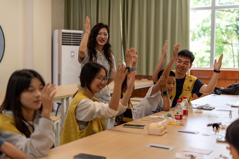 课堂伊始,陈柏序同学化身为非遗文化的传播使者,借助精心制作的图文资料,带领孩子们踏上一段螺钿工艺的历史探秘之旅。他从新石器时代贝类在日常生活中的多样化应用讲起,历数商周时期螺钿技艺的初步显现,细述唐代螺钿工艺在漆器、铜镜等器物上展现的精湛绝伦,再至宋元时期的技艺精进与应用领域拓展,直至明清时期在家具、工艺品等方面达到的鼎盛与繁复,层层递进,娓娓道来,让孩子们对这项技艺的理解愈发深刻,深深沉浸在非遗文化的深厚底蕴之中。随后,在手工实践环节,志愿者们全程耐心指导,孩子们则充分发挥创意,将五彩斑斓的螺钿材料精心拼贴、组合,将所学化为实践,制作出一件件独具匠心的手工艺品。他们专注投入的神情与完成作品时洋溢的自豪笑容,交相辉映,共同构成了课堂上最动人的风景。