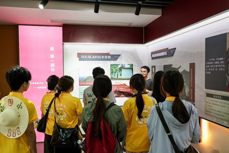 实践队首站深入罗河镇龙山村,在村委会书记杨湖春的介绍下,拜访抗美援越老兵汪雨先,聆听其烽火故事,同学们深刻的感受到了岁月的艰辛,心灵在红色精神的浸润下得到升华;随后,实践队前往江西省贵溪市革命烈士纪念馆,在场馆负责人的解说下,瞻仰纪念碑、参观陈列,回溯先辈们的奋斗历程,深刻领悟今日和平的来之不易;接着前往周坊暴动指挥部旧址展馆,在工作人员的解说下参观红七连广场,触摸历史的脉搏;行程尾声,实践队结合走访见闻,聚焦研讨红色IP“小红马”形象的优化,力图使其成为传递红色精神、讲述红色故事的生动载体,为乡村红色文化传播注入青春创意,助力红色基因的传承。