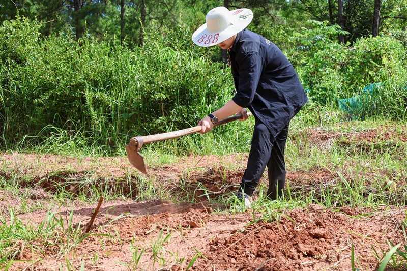 活动伊始,辅导员蔡晓丽老师为队员们深入讲解了劳动教育的重要意义。蔡导指出,劳动教育不仅是培养动手能力的过程,更是磨砺意志的关键途径。这不仅仅是一次简单的实践活动,更是一堂意义非凡的“行走的思政课”。随后,杨桥村书记张军安排村里经验丰富的种植能手,现场为队员们传授芝麻种植技巧。队员们亲自动手实践,翻土、播种、覆土,尽管头顶炎炎烈日,汗水浸湿了衣衫,大家都干劲十足。习近平总书记曾指出:“劳动是财富的源泉,也是幸福的源泉。人世间的美好梦想,只有通过诚实劳动才能实现;发展中的各种难题,只有通过诚实劳动才能破解;生命里的一切辉煌,只有通过诚实劳动才能铸就”。这些话语为实践队的队员们指明了方向。在此次芝麻种植活动中,队员们用实际行动践行着习近平总书记的教导,深刻体会到一粒小小的芝麻种子,从播下到收获,需要付出无数辛勤的汗水。