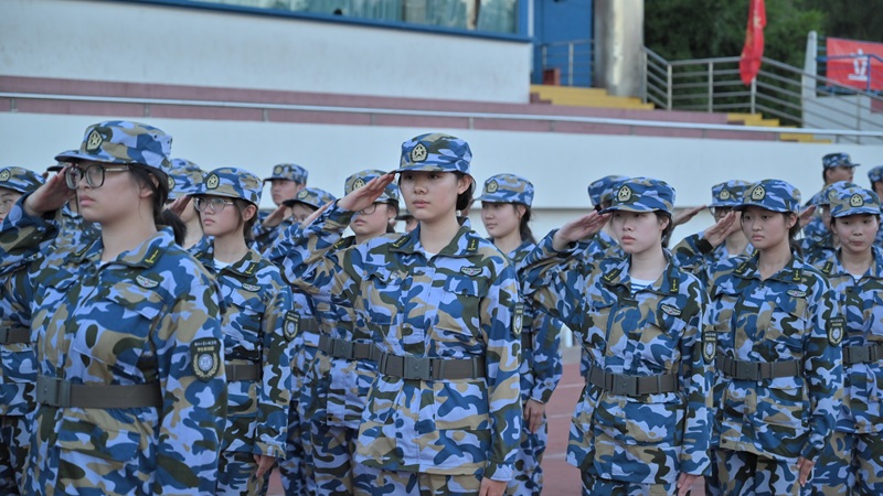 在训练中,同学们先后经历了站军姿、队列变换、齐步与正步等多项内容。烈日下,他们昂首挺胸,目光坚定,汗水顺着脸颊滑落,浸湿了迷彩服的衣领,却没有一个人退缩;细雨中,他们依旧精神饱满,踢腿摆臂动作整齐划一,步伐铿锵有力。教官们耐心示范每一个动作细节,又严格纠正偏差,而同学们则在一次次重复与打磨中不断进步,从最初的生疏僵硬到如今的默契流畅。军训不仅锻炼了大家的体魄,更培养了团队精神与集体荣誉感。休息间隙,同学们互相整理军帽、擦拭汗水,彼此鼓励的话语让训练的疲惫化为继续前行的力量。
