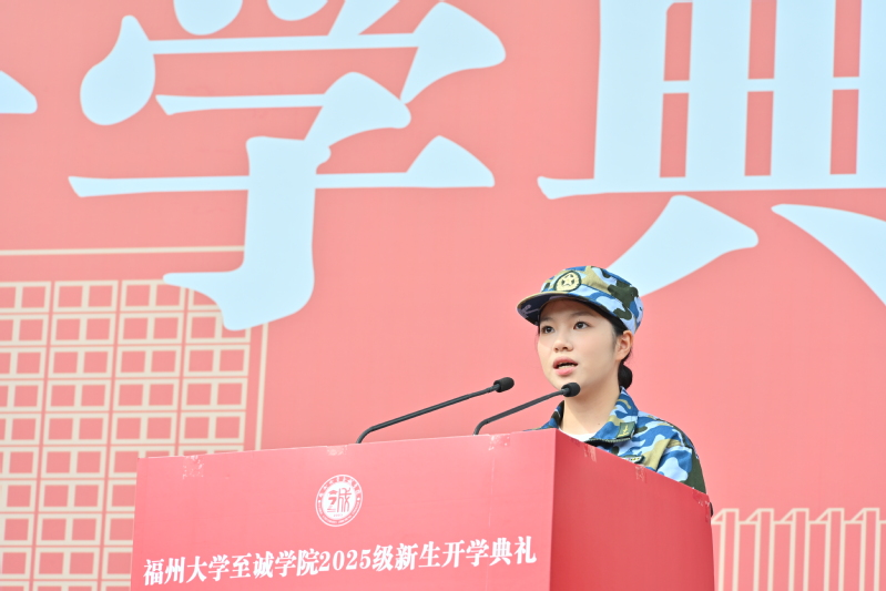 2025年9月25日上午,福州大学至诚学院2025级新生开学典礼盛大启幕。食品与生物工程系新生李芷如荣膺新生代表,站上典礼讲台,以“以青春之我,赴时代之约”为主题进行代表发言 。