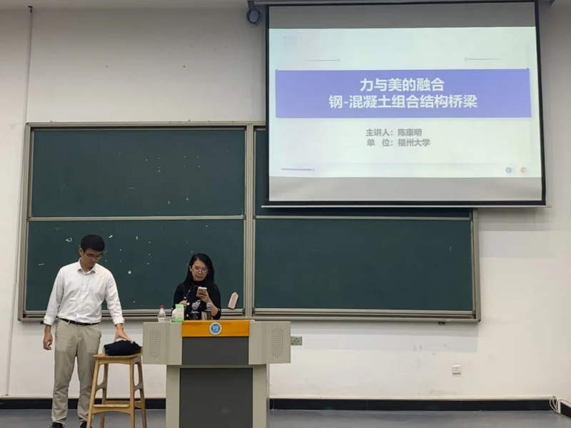 福州大学至诚学院土木系“专家系列讲座”现场,陈康明教授带来以“钢-混凝土组合结构桥梁”为主题的讲座,为在场学子打开了工程领域的全新视野。本次讲座由雷子伊辅导员主持,22、23级土木学子参加。