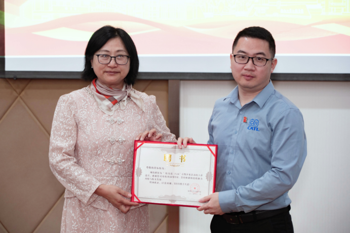 在随后进行的校友主题分享环节,宁德时代新能源公司电芯工艺工程部电芯工艺开发经理、校友黄标先生,结合自身在新能源材料领域的丰富经验,深入剖析行业现状、发展趋势及关键技术,并分享宝贵的职业成长心得,引发了在场师生的热烈反响。