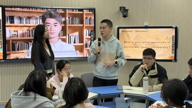 11月17日,外国语系在子兴南楼402教室开展英语角活动,本次活动以“传统匠艺之妙——榫卯”为主题,架起传统营造智慧与跨语言表达的桥梁。