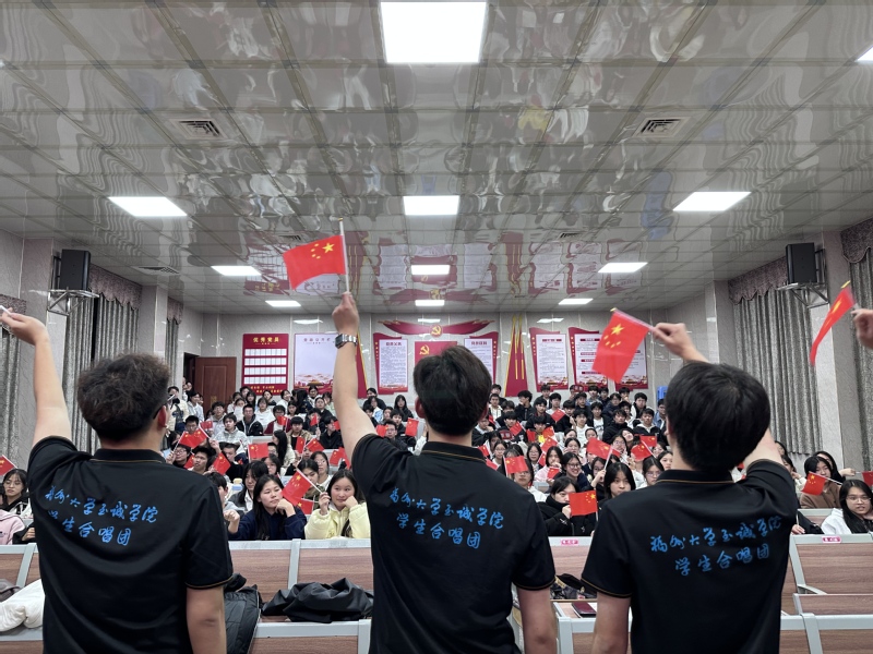 演出在福州大学至诚学院合唱团带来的合唱《胸怀山海》中拉开帷幕。女声独唱《光亮》传递追逐光明、坚守希望的信念;小组唱《一腔热血》诠释出青春应有的热血与担当。南音《风打梨》、小组唱《芹山走一回》、男声独唱《江河万古流》依次上演,给观众带来多样艺术体验。在合唱《侯德榜之歌》中,福州大学至诚学院合唱团精彩演唱,合唱团成员与同学们积极互动,现场氛围热烈。赖子馨同学的生动讲述,带领大家回顾侯德榜先生的事迹。最后,在潘超老师的指挥下,合唱《中国》用激昂的歌声表达出对祖国的热爱与赞美,将现场气氛推向最高潮。