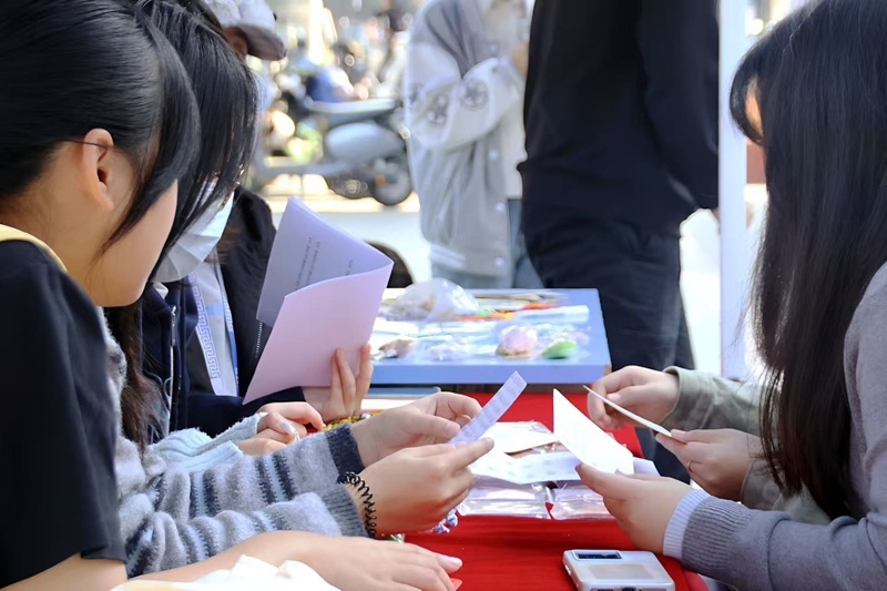 活动精心设置“续绘红迹”手作书签、“红韵绘袋”主题创作、“红色记忆”快答闯关三大特色环节,以沉浸式体验让红色历史可触可感。“续绘红迹”现场,空白书签与彩色画笔整齐陈列。参与者以笔为媒,将爱国初心凝于文字。在指尖的细腻创作中,红色精神也随一枚枚精巧书签静静传递。“红韵绘袋”板块里,空白帆布袋成为承载红色情怀的独特载体。参与者手握丙烯颜料,描绘五四运动的激昂场景,将鲜明的爱国意象融入笔触。这些充满温度的手绘帆布袋,让精神传承自然融入日常生活。“红色记忆”快答闯关环节气氛最为热烈。二十张红色人物谜面、十组英雄画像剪影依次铺展,瞬间点燃大家的参与热情。在趣味互动与知识竞猜中,不仅深化了对红色历史的认知,更真切感悟到革命先辈的赤胆忠诚与责任担当。
