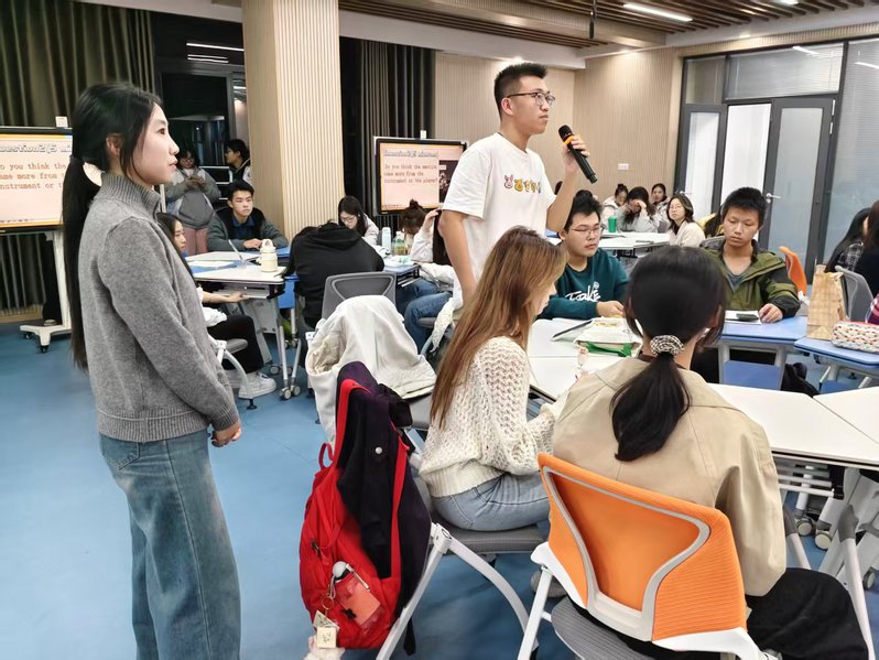 从观摩到思辨,从游戏到共创,这场英语角让古琴古韵不再是书本文字,也让同学们能够领略传统匠艺精髓,也完成对“物”与“人”的深度思考,让非遗文化在跨语言碰撞中焕发新的生命力。