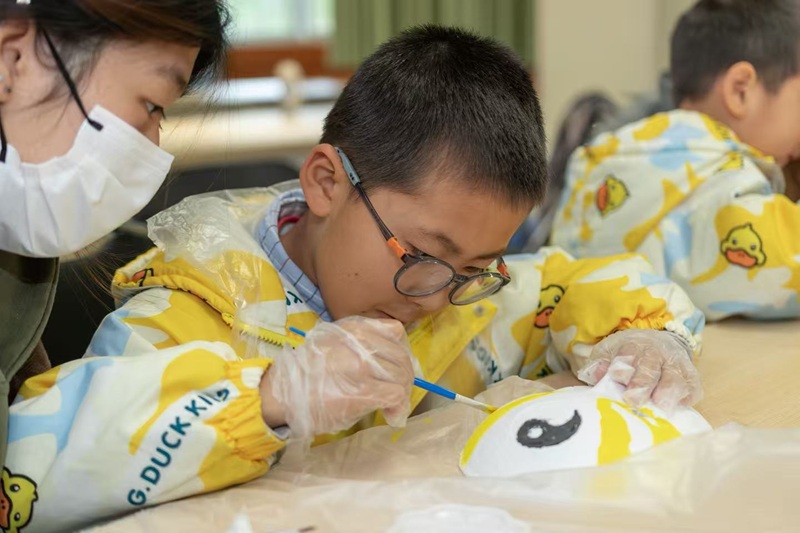 传媒与设计系结合小朋友的认知特点,发挥专业优势,将复杂的脸谱文化拆解为浅显易懂的知识点,用生动有趣的方式讲解脸谱的色彩寓意。同时,团队定制了尺寸适宜、操作简便的脸谱模板,搭配安全环保的颜料,充分适配小朋友的动手能力。志愿者们则以耐心引导为核心,手把手指导孩子们勾勒线条、调配色彩,并在创作过程中穿插讲解脸谱背后的历史典故,全程陪伴他们投入学习与实操,让小朋友在轻松的动手实践中,自然而然地感受传统文化的熏陶。