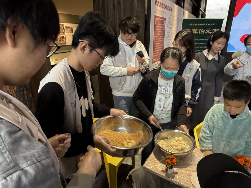 “米时”香漫街巷,非遗薪火暖冬阳。活动现场,省级非物质文化遗产“耳聋伯”元宵制作技艺第四代传人林威,带领居民手作寓意团圆的冬至美食“米时”。元宵、汤圆、糍粑……一道道闽地风味,不仅是舌尖的眷恋,更凝结着福州绵长厚重的生活记忆与地域人文。在志愿者的悉心指引下,居民们指尖轻揉慢捻,捏塑成圆,在一招一式的亲身体验中,沉浸式领略非遗技艺之美,重温深藏于食物之中的文化温情。