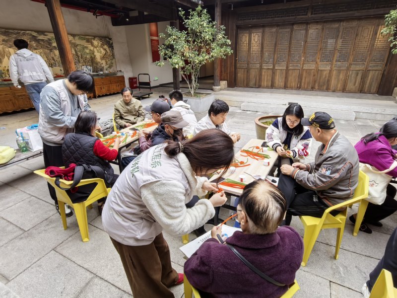 活动现场,各族居民以四五人为一组,相邻而坐,志愿者们讲解演示:先扭出圆润的柿子形状,再点缀翠绿的叶片,最后组装成精巧的花束。志愿者们帮助视力较弱的老人,俯身协助裁剪枝干、固定造型,确保每个人都能全程参与、乐在其中。当一束束寓意“柿柿如意”的花束在合作中诞生,它们不再仅仅是手工作品,更成为连接彼此、传递祝福、增进认同的生动纽带——以共同创作的温度,让民族团结之花在指尖绽放。