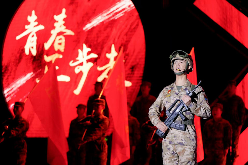 《青春正步走》(原创)表演:陈俊智、黄伟杰、院退役大学生应急连
