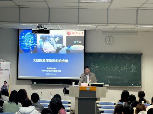 12月18日,第38期经心大讲堂特邀福州大学黄章树教授以“大数据在物流业的应用”开展专题讲座。黄章树教授深耕物流供应链管理领域,他以电影《点球成金》为引,点明数据的生产资料与资产属性,拆解大数据提升物流效率、降低成本的核心作用,详解大数据的定义、4V特征、商业价值及应用,并设置现场互动环节。讲座为学子搭建对接行业前沿的桥梁,助力其明晰专业知识与数字技术融合的重要性。