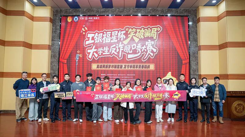 1月16日,工银福星杯“笑破骗局”大学生反诈脱口秀大赛决赛收官。本次活动由共青团福州市委员会、福州市反诈中心、鼓楼区委宣传部指导,共青团鼓楼区委员会、鼓楼区反诈中心主办,中国工商银行福州鼓楼支行、共青团福州大学至诚学院委员会承办。活动以“幽默破局、青春反诈”为核心,创新宣传形式,筑牢校园金融安全防线。