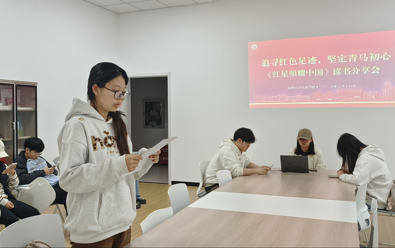 3月18日,为深入学习红色历史,传承革命精神,福州大学至诚学院第七期“青马工程”大学生骨干班在团学活动中心会议厅举办《红星照耀中国》读书分享会,青马班学员积极参与本次活动。