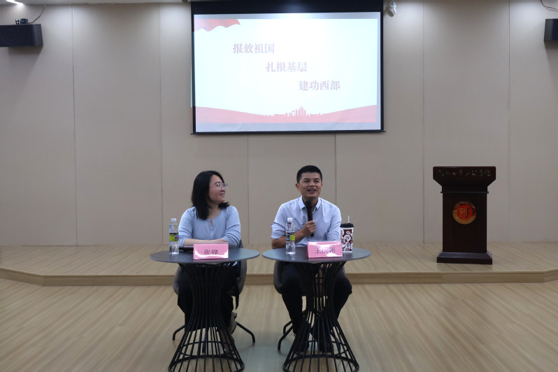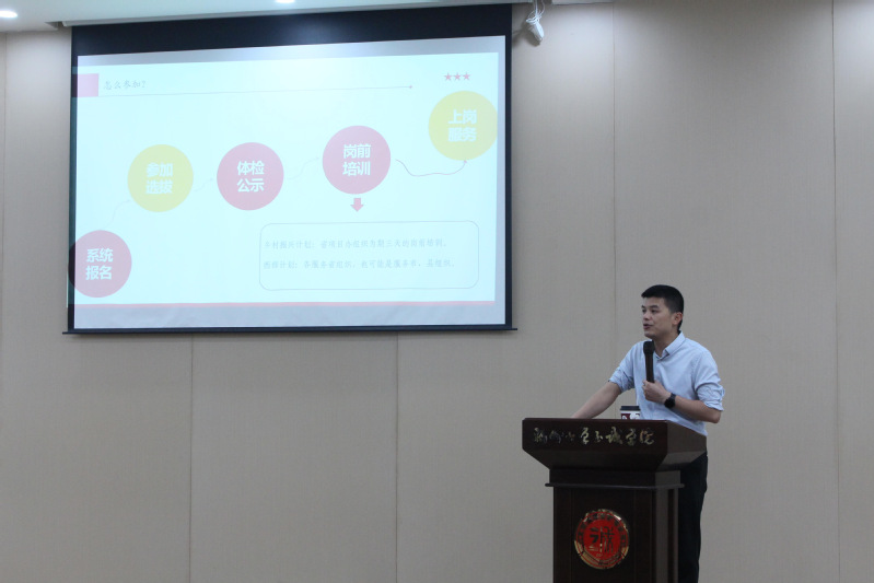 宣讲环节,王庆彬老师围绕两项计划的报名条件、选拔流程、待遇保障、岗位分配及发展路径等内容进行系统解读,为同学们提供清晰的政策指引。互动答疑环节,同学们就服务地区、资格审核、政策支持等问题积极提问,两位老师逐一耐心解答。